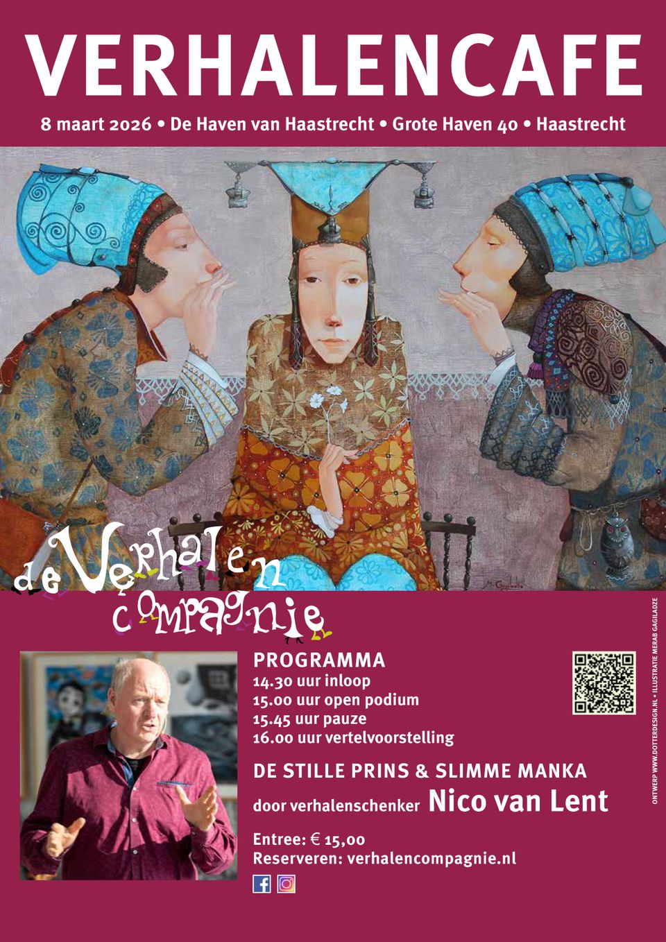 De voorjaarseditie van het Verhalencafé staat gepland op 8 maart: Internationale Vrouwendag. Het is dus geen toeval dat de meeste verhalen over bijzondere, pientere en dappere vrouwen zullen gaan. Hoofdverteller Nico van Lent stelt ons zelfs aan twee vindingrijke heldinnen voor: het meisje dat probeert de Stille Prins aan het praten te krijgen, en de Slimme Manka, die het hart van de jonge koning verovert, al is ze slimmer dan hij leuk vindt.