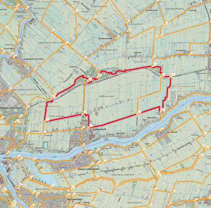 De kaart van de Krimpenerwaard voorzien van de knoopunten en een 6-tal leuke routes.
