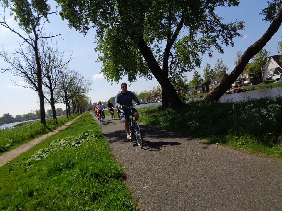 Bij onze volgende halte hebben we uitzicht op de Oukoopse molen, een "wipmolen". De bovenkant van de molen kan onafhankelijk van het huis ronddraaien.We vervolgen onze fietstocht door de prachtige Reeuwijkse Plassen.