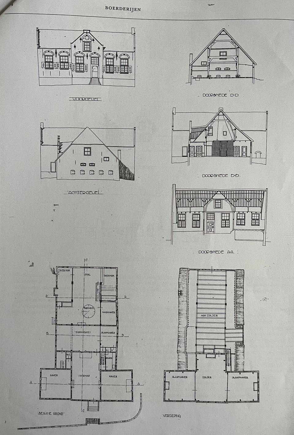 Opvallend mooi zijn de korfbogen met de natuursteenblokken en sluitstenen boven de ramen van het voorhuis. Ook is de voorgevel voorzien van fraai smeedwerk voor de gevelankers en luiksluitingen en natuurlijk de voordeur. Die kon alleen van binnen open en werd alleen gebruikt wanneer iemand voorgoed het huis verliet. Bijvoorbeeld als de dochter ging trouwen of wanneer de dode het huis werd uitgedragen. Op de zolders in het voorhuis waren twee slaapkamers en in het achterhuis was een hooizolder én ook een waterzolder. Bij overstroming van de waard kon het vee via een trap naar boven en stonden ze veilig.