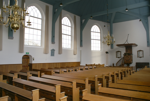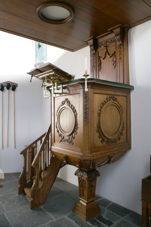 Vermeldenswaard zijn de kansel in Empirestijl (1830), de lessenaar en de doopzuil, die naar analogie van de kansel gemaakt zijn (2007), het predikantenbord (2008) en de oude geldkist (1773), die nu als collectezakkenrek dienst doet.