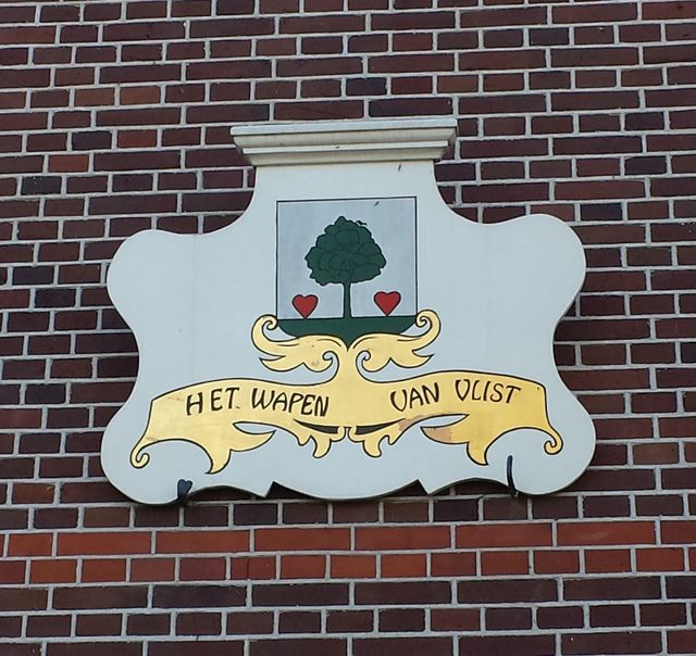 Boven de deur van het vroegere raadhuis van Vlist, een pand uit 1910, hangt nog het oude gemeentewapen van vóór 1986. Op dit wapen staan twee harten die de verbinding tussen de Lopiker- en Krimpenerwaard tonen. De boom met vogel staat voor de prachtige natuur. Het echtpaar Kruiswijk kwam in 1947 hier wonen. Vermoedelijk was het daarvoor nog café Het Wapen van Vlist en ging de drankvergunning met de koop mee over.