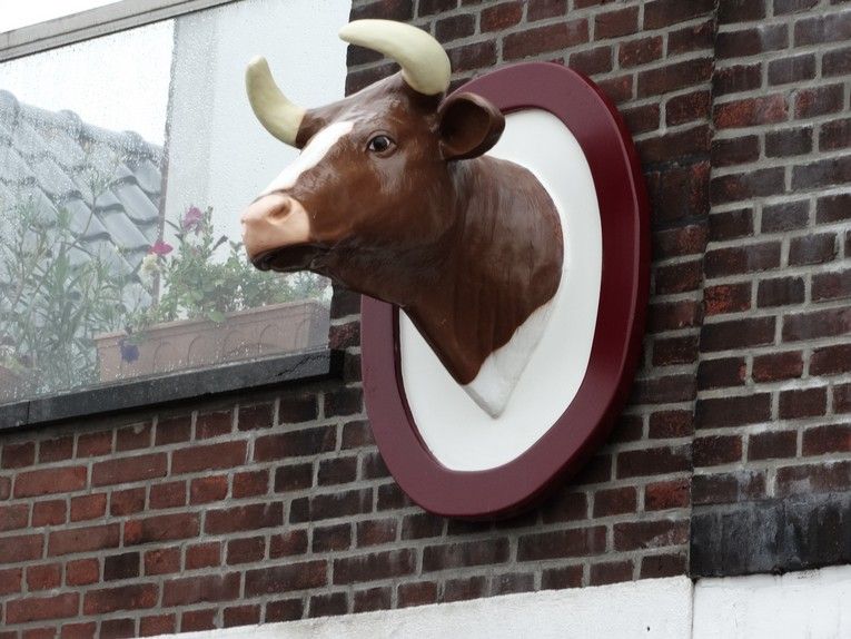 Volgens kenners was de voormalige ossenkop gewoon een roodbonte koeienkop, geschilderd in de wat onnatuurlijke kleur van roze/rood/paars.