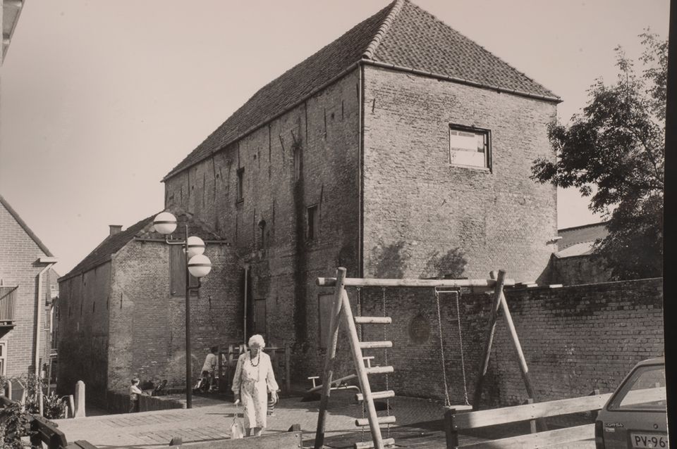 Op het moment dat je vanaf de Voorhaven de Havenstraat in loopt, rijst de Spaanse Kazerne op in het straatbeeld. Ondanks de naam die dit monument draagt, is de Spaanse Kazerne voor zover we weten nooit een kazerne geweest. Het heeft vanaf dat het gebouwd werd diverse functies gehad als pakhuis, leerlooierij en kolenopslagplaats. De afgebeelde foto is gemaakt in 1955, toen de Spaanse Kazerne diende als kolenopslagplaats.
