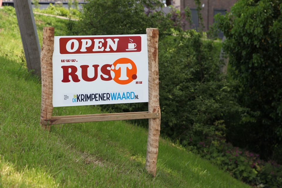 Rustpunten zijn duidelijk herkenbaar aan het Rustpunt-bord en zijn alleen geopend als het bord ‘open’ aanwezig is: simpel en laag- drempelig.