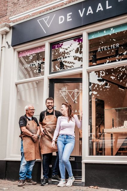 Vorige maand werden de deuren van galerie en atelier de Vaal geopend. Jolijn ziet veel nieuwsgierige blikken. “Hoewel binnenlopen altijd mag, is het ook prettig om op afspraak te werken.” Op deze manier is er alle tijd voor de klant. “Omdat ons atelier achter de galerie zit kunnen we snel schakelen. Onze goudsmid Denise helpt onze klanten met het ontwerpen van een persoonlijk sieraad.”